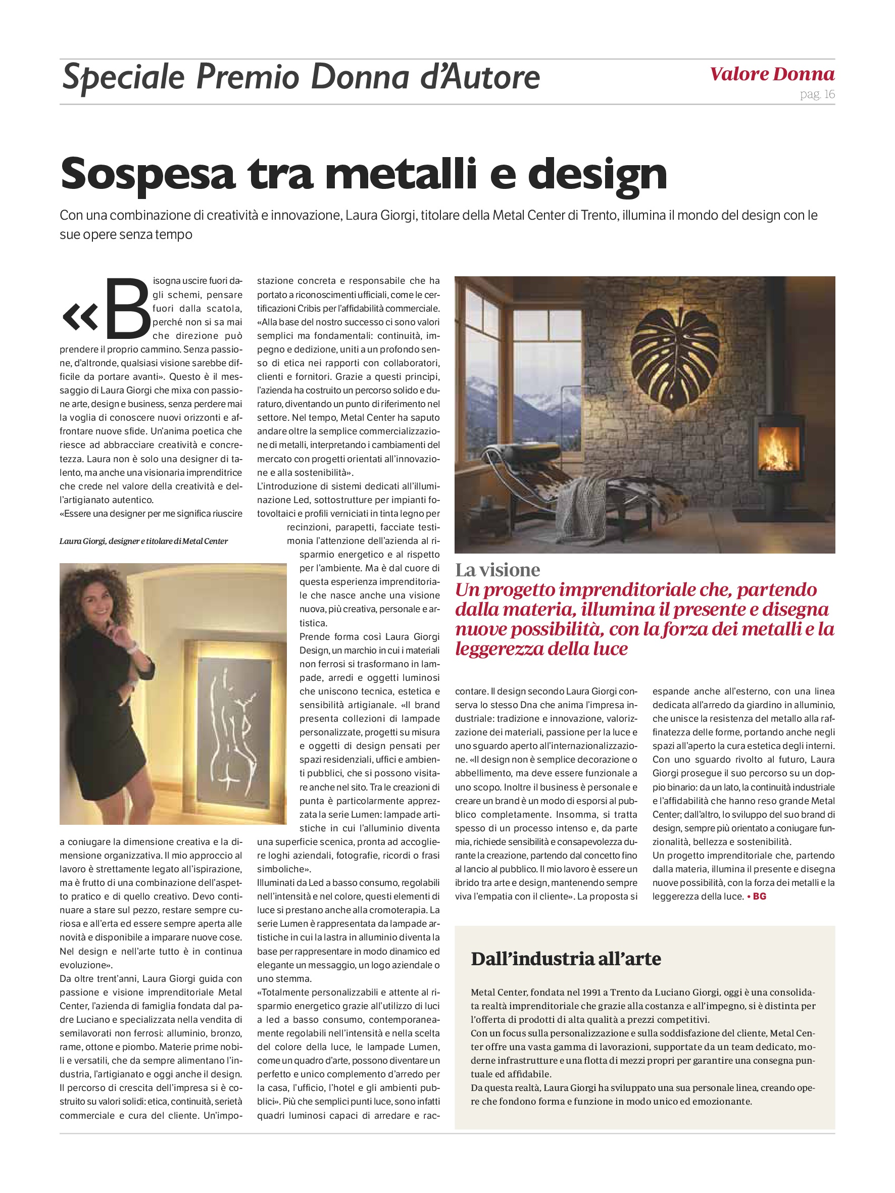 Con una combinazione di creatività e innovazione, Laura Giorgi, titolare della Metal Center di Trento, illumina il mondo del design con le sue opere senza tempo